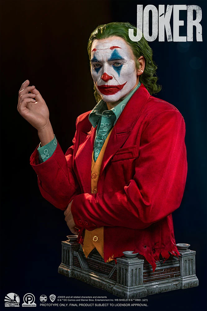 Infinity Studio hereby present the world-class ultimate Arthur Fleck collectible with our proud Silicone life size bust artistry! The masterpiece movieΒ JokerΒ achieved great success in 2019. Joaquin Phoenix casted Arthur Fleck with his brilliant performance in the story about how he become GothamβsΒ JokerΒ from an ordinary comedian.