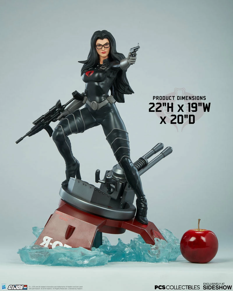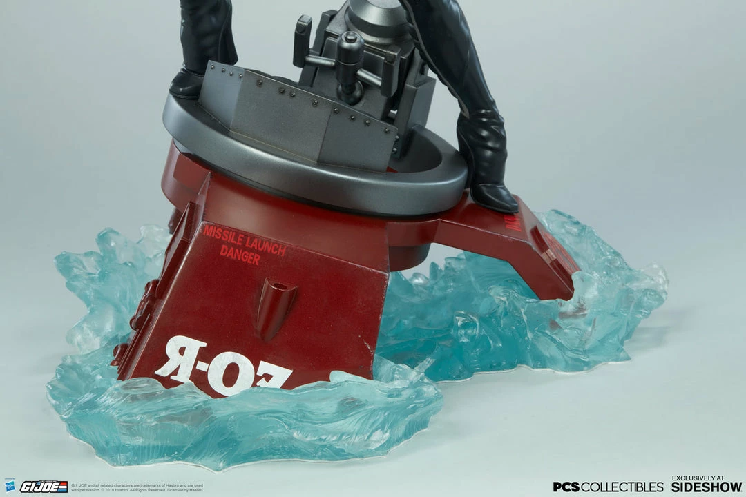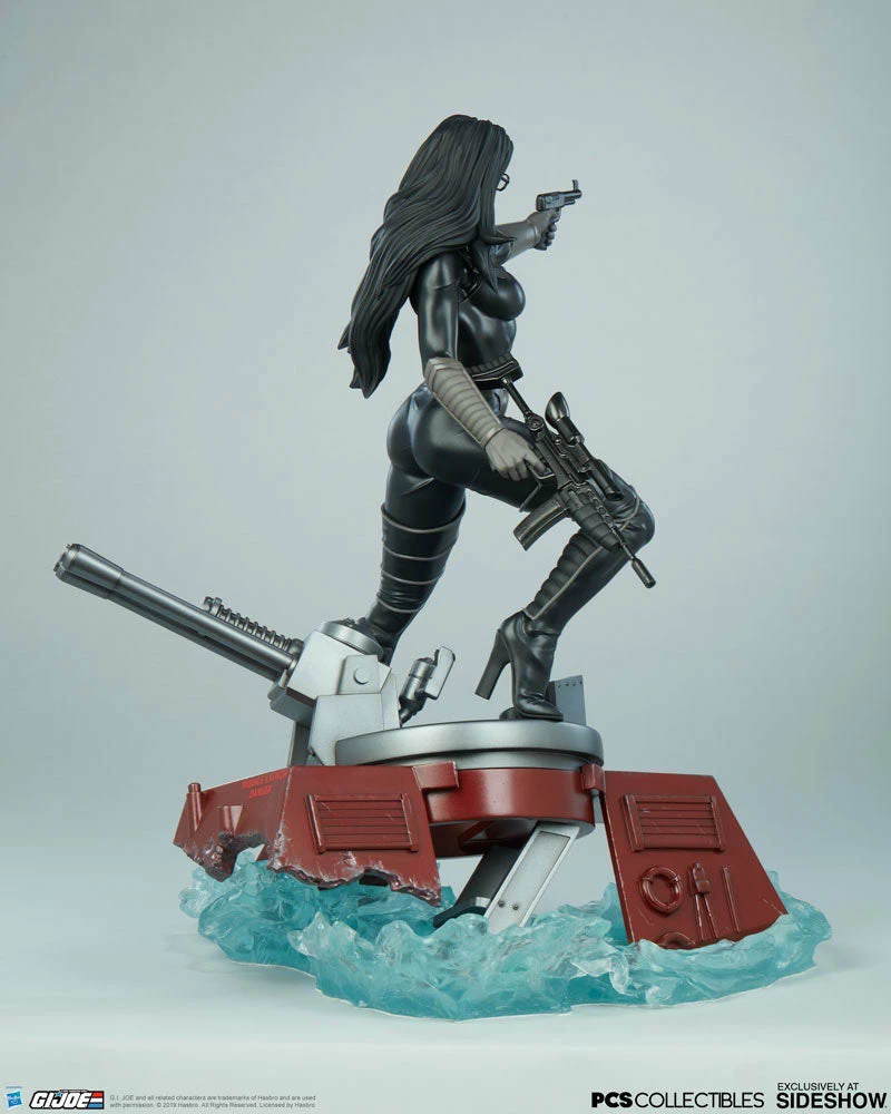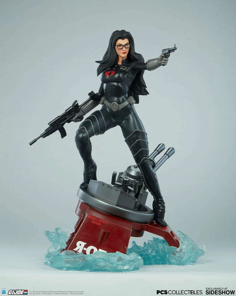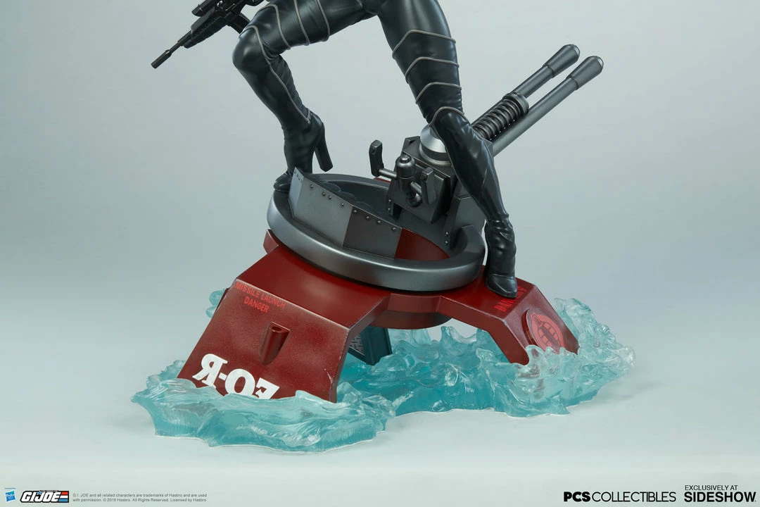 The Baroness Statue measures 22β tall as the ruthless lieutenant straddles the turret cannon of the Moray while it sinks beneath the water.Β Blue translucent waves churn against the red hydrofoil as Baroness stands her ground, waiting for extraction from the battle against G.I. Joe.