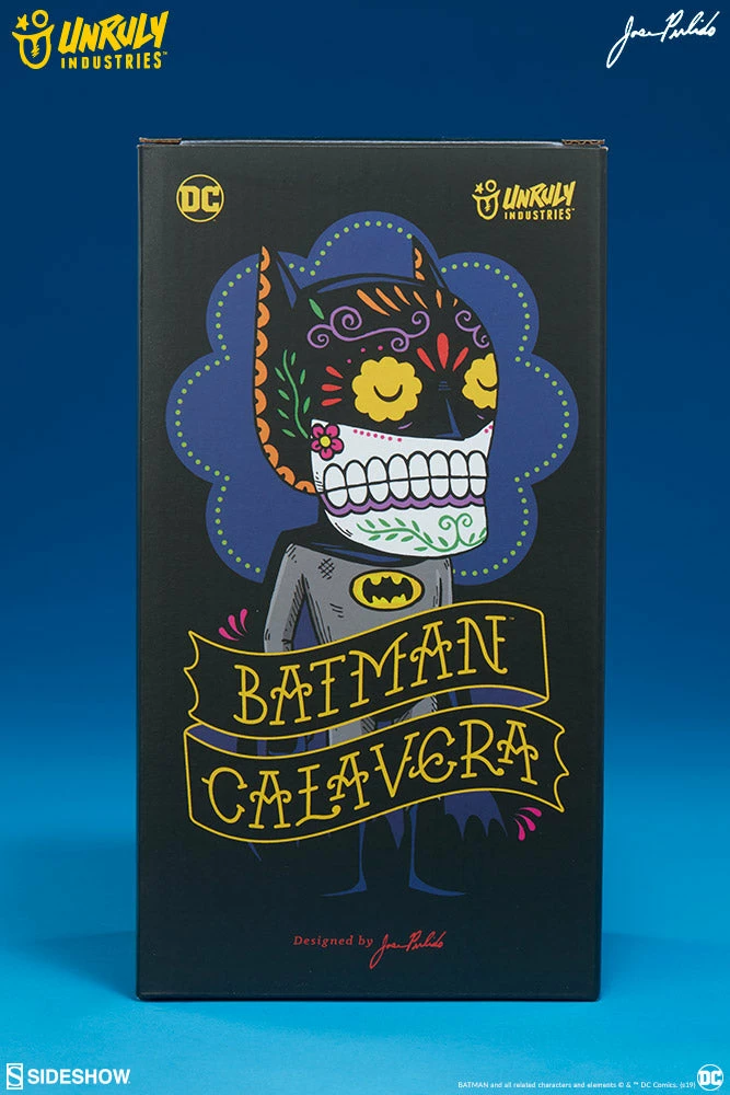 The Dark Knight shines bright in vibrant Día de Los Muertos style with the Batman Calavera limited edition designer collectible toy by Jose Pulido!