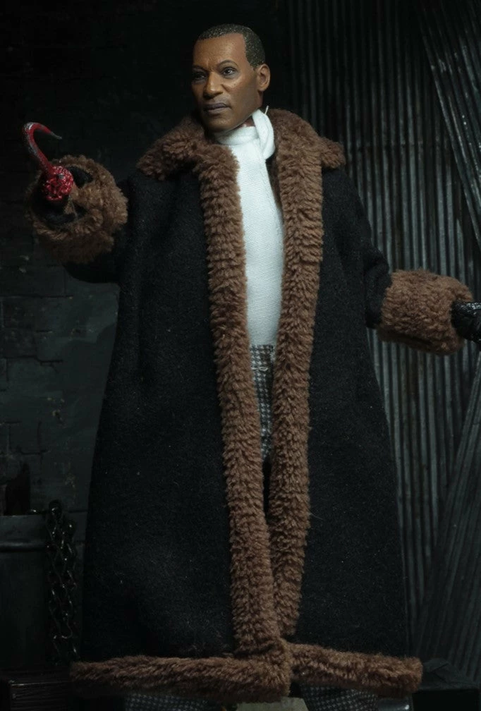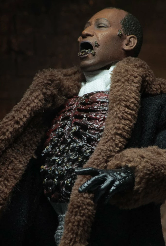 NECAβs clothed action figure features the likeness of legend Tony Todd in two forms β interchangeable heads allow regular and bee-covered expressions. The figure also has an elaborate soft goods coat and comes with an attachable βbee swarmβ chest.
