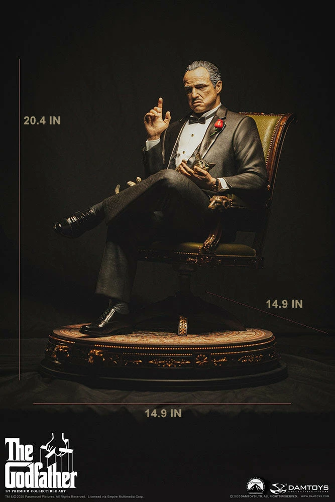 Designed with reference to the restoration of the posture sitting on the chair and holding a cat at the beginning of the film, The Godfather 1: 3 full-body statue recreates, the movie-accurate image and presence of the real Godfather.