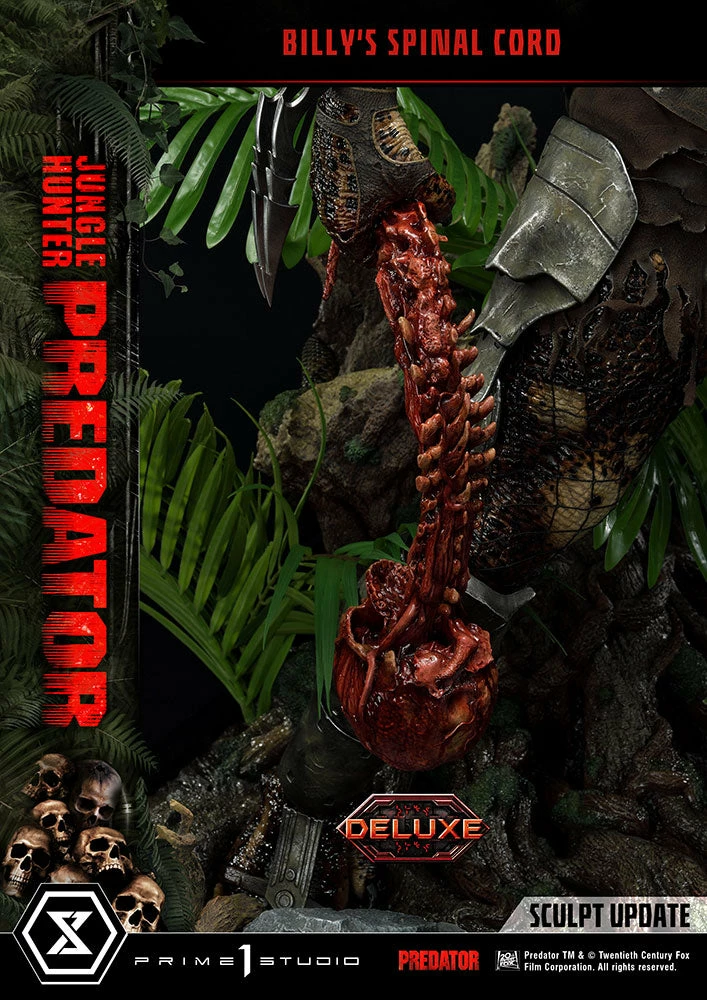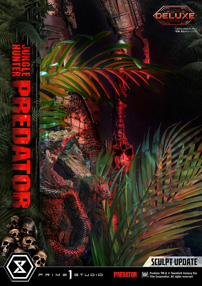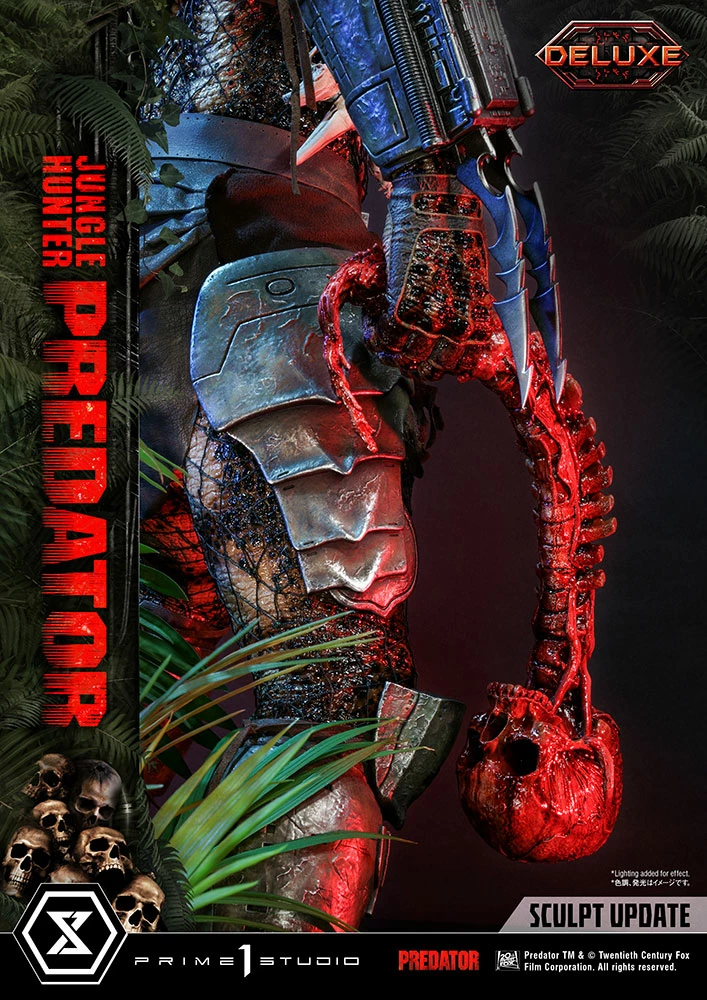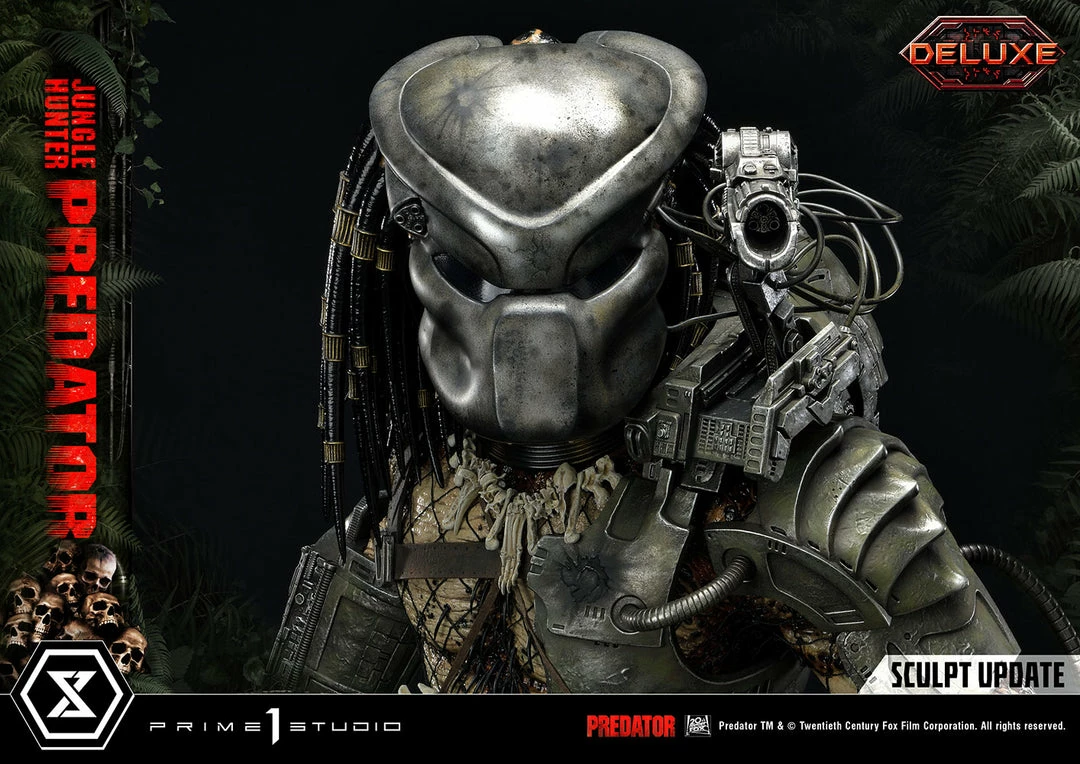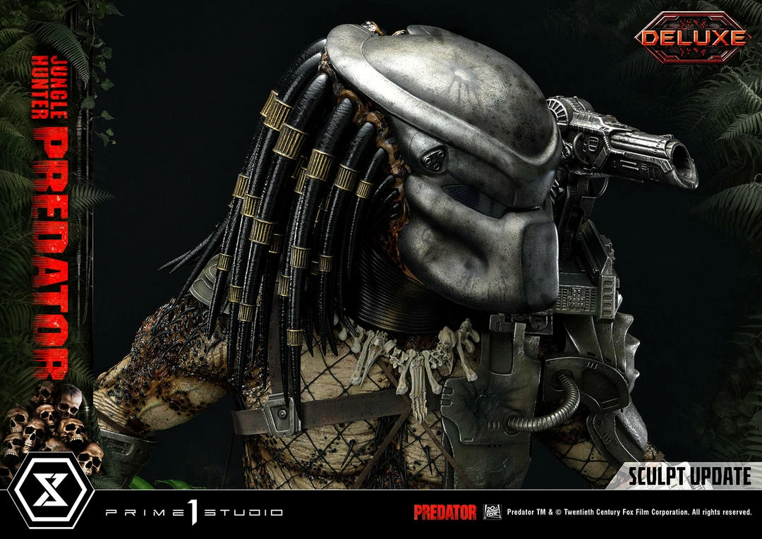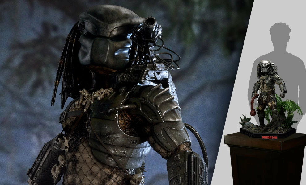 Standing majestically at over 35 inches tall, the Jungle Hunter Predator reveals itself as an imposing, otherworldly peril intent on relentlessly hunting its prey. In this pivotal moment, where the Jungle Hunter Predator reveals his true form to Dutch (the main protagonist of the film), the skilled artisans at Prime 1 Studio have seated the Predatorβs Bio Mask in the gnarled roots of a tree. In the film, the Predator takes off his Bio-Mask and drops it in the putrid, leech-infested water of the jungle, which we have faithfully recreated here with translucent resin and detailed inclusions, for a convincing watery effect.