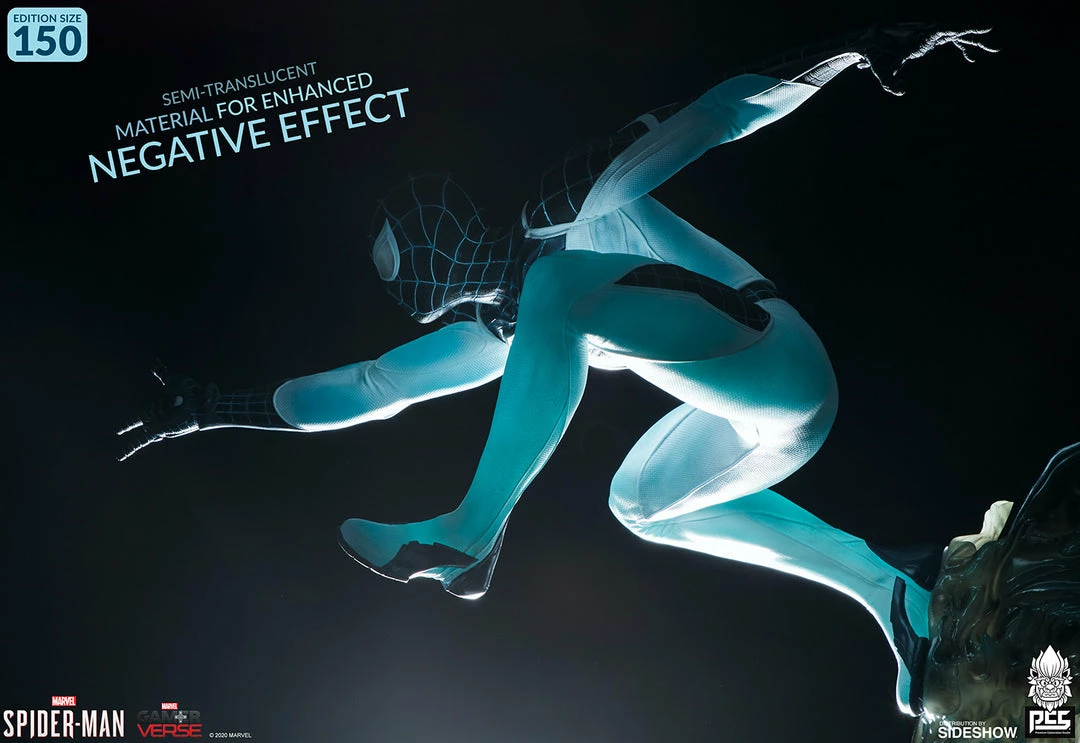 The Spider-Man Negative Zone Suit 1:3 Scale Statue captures all of the action and web-slinging thrills of the hit video game in a dynamic collectible format. The statue measures 24β tall as Peter Parker leaps into battle against Martin Li, also known as the villainous Mister Negative. Charged up with semi-translucent negative energy, Liβs mystical and monstrous Demon form serves as the statue base and brings fans back to the center of an epic boss battle translated right from the screen to your shelf.