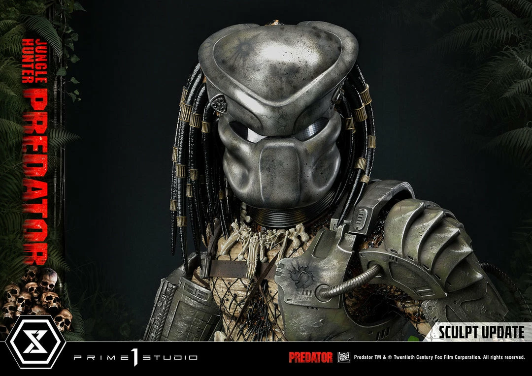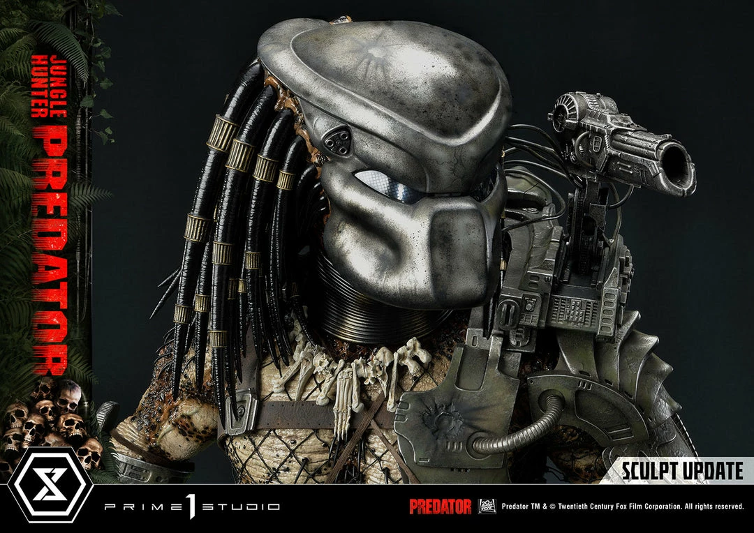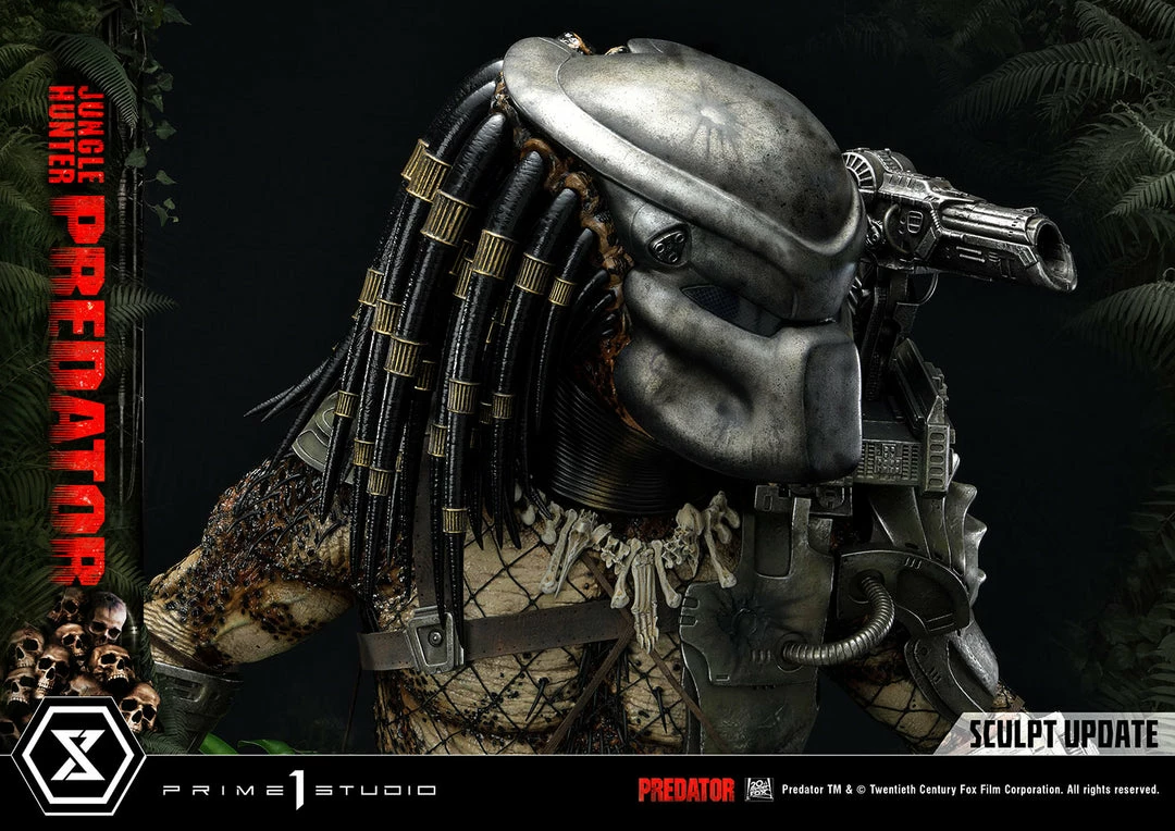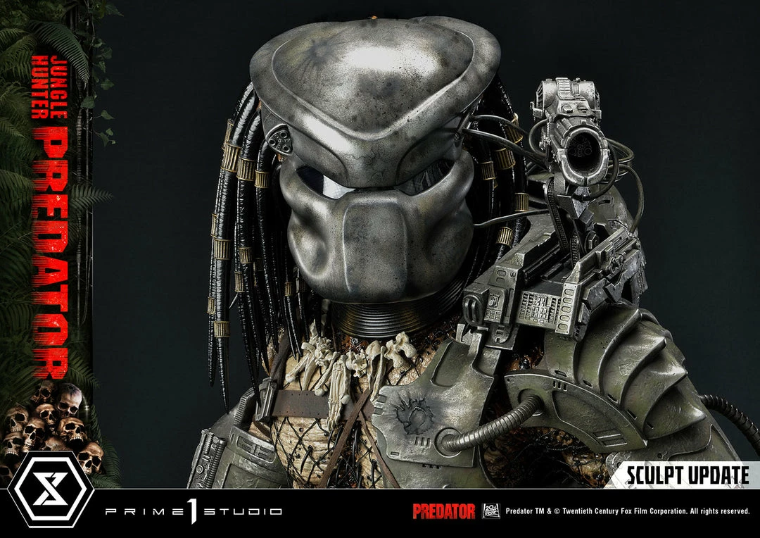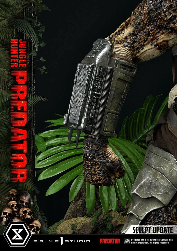 The importance of this statue simply cannot be overstated. The last 1:3 scale Jungle Hunter Predator statue came out 12 years ago. And this magnificent piece is a direct homage to that classic but turned way up to 11! The Predatorβs skin comes alive in this intricately detailed masterpiece of polystone and mixed materials. Dare to take a closer look at his multitude of features, all expertly orchestrated by Prime 1 Studio. The Predator is ready to eviscerate his prey with the wrist-mounted double blades on his right arm. He comes with two sets of open and closed fists, with extended and retracted blades. Each of his βdreadlocksβ are meticulously placed. Instead of merely sculpting it, the netting all over his body is real material. And our craftsmen have synced perfectly together to render the battle-worn look of his masks and other armor pieces through sculpted damage and carefully weathered metal.Β