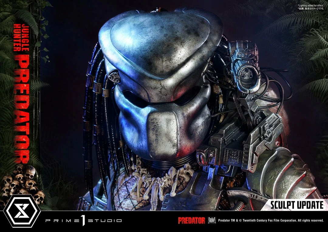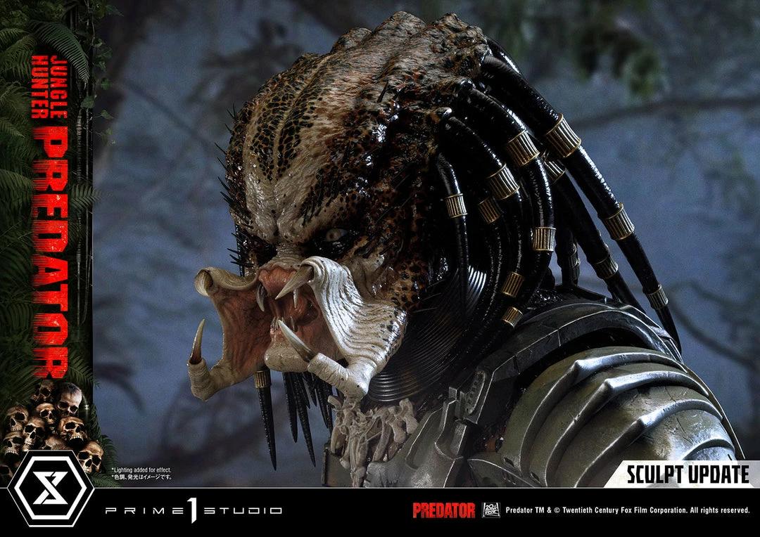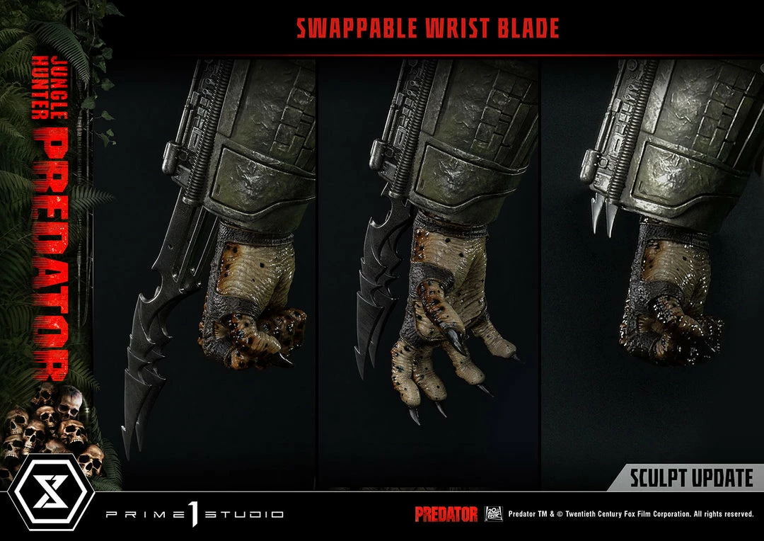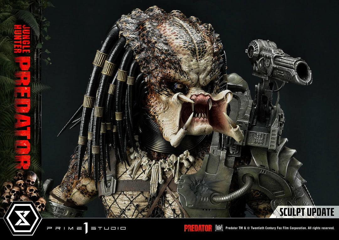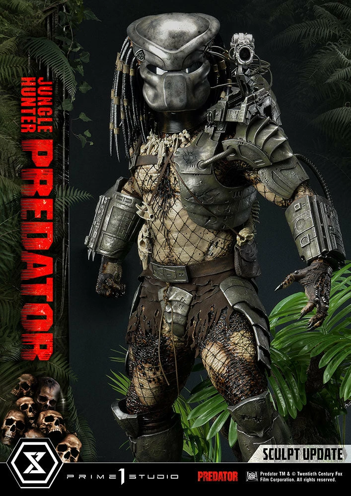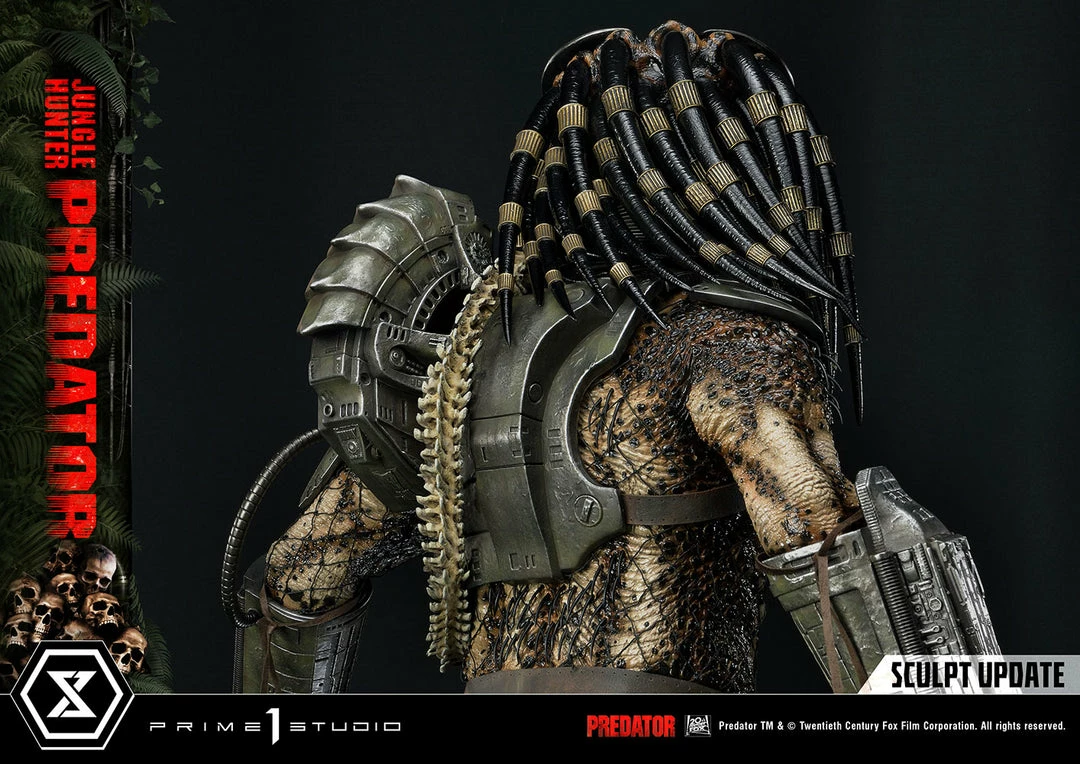 The importance of this statue simply cannot be overstated. The last 1:3 scale Jungle Hunter Predator statue came out 12 years ago. And this magnificent piece is a direct homage to that classic but turned way up to 11! The Predatorβs skin comes alive in this intricately detailed masterpiece of polystone and mixed materials. Dare to take a closer look at his multitude of features, all expertly orchestrated by Prime 1 Studio. The Predator is ready to eviscerate his prey with the wrist-mounted double blades on his right arm. He comes with two sets of open and closed fists, with extended and retracted blades. Each of his βdreadlocksβ are meticulously placed. Instead of merely sculpting it, the netting all over his body is real material. And our craftsmen have synced perfectly together to render the battle-worn look of his masks and other armor pieces through sculpted damage and carefully weathered metal.Β