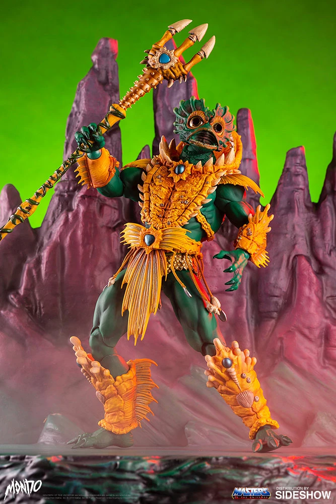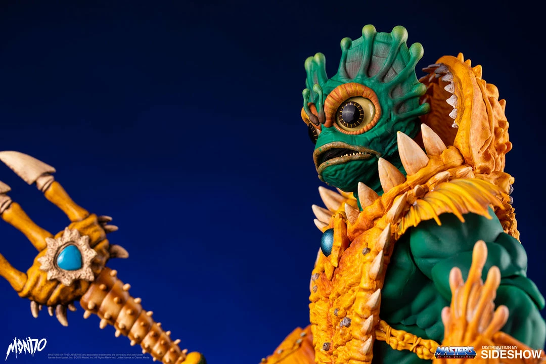 By the Power of Grayskull, you too can have the Power! Sideshow and Mondo are proud to bring you the next figure in the Masters of the Universe sixth scale line- Mer-Man! Featuring over 30 points of articulation, fish-eyes, sea-powered armor, and a lot of accessories, this is the most powerfully fishy figure you will ever find, from here to Eternia’s oceans!