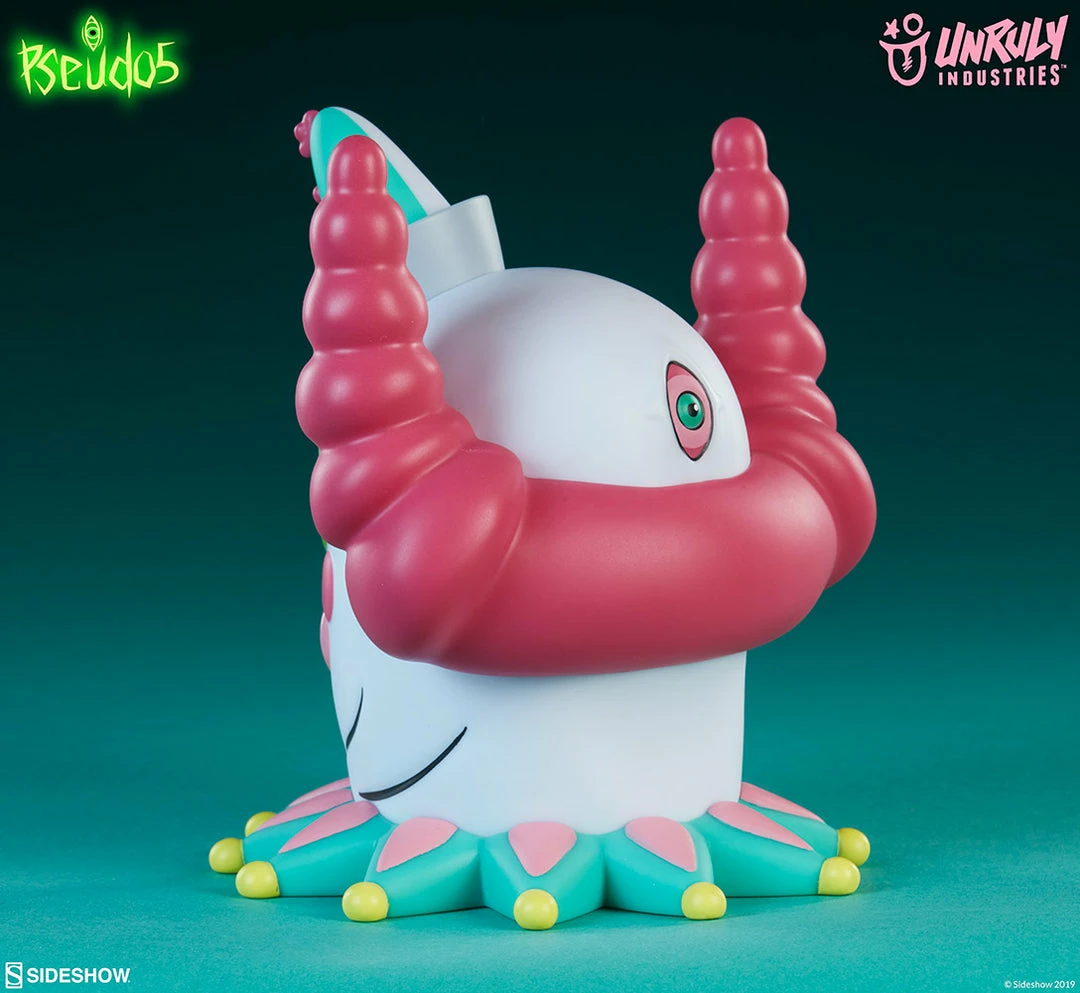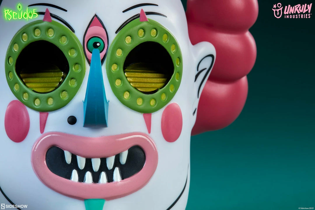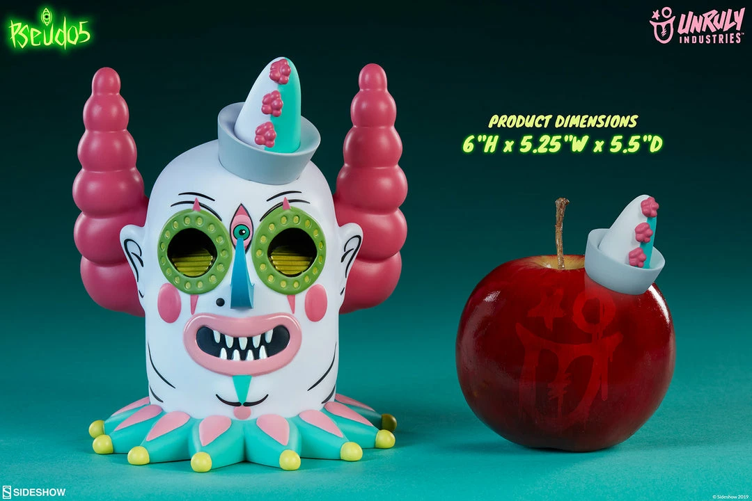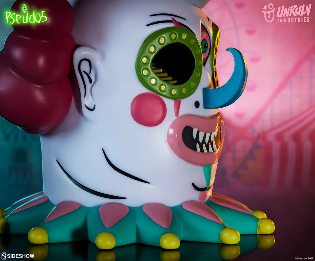 Pseudo5 is a psychedelic dark artist who specializes in creating neon illustrations of cryptozoological creatures and creepy clowns among other wild monstrosities! Part of what makes her work so exciting is her youthful sense of wonder and fantasy that makes its way into each piece. Her work walks a fine line between repulsion and enticement, and bright colors and playful style with dark imagery are trademarks of her work.