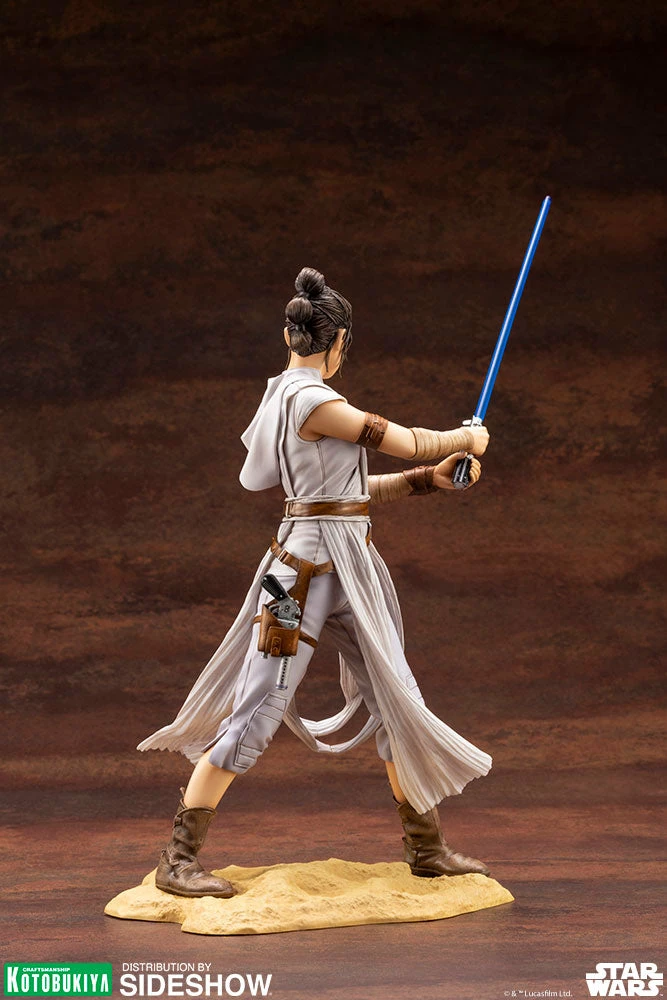 Rey joins Kotobukiya’s ARTFX series from the movie,Β Star Wars: The Rise of Skywalker! Rey stands approximately 11.42″ tall with a lightsaber in hand. This 1:7 scale statue features fine details and a desert-themed based.