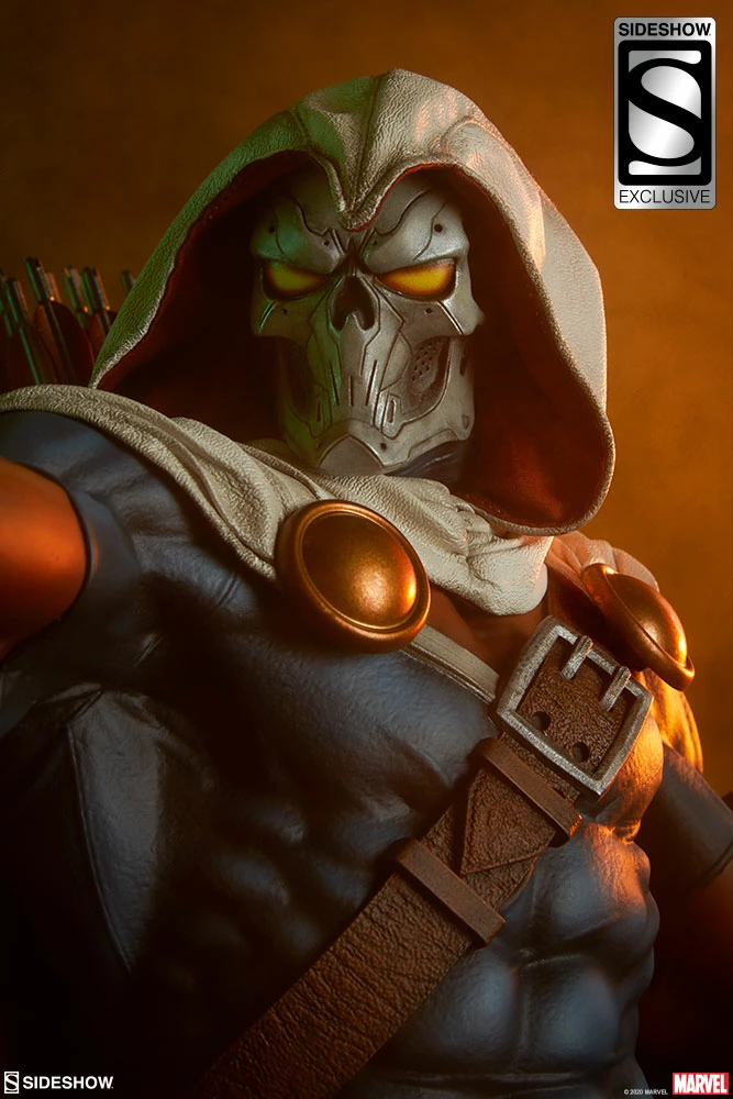 The Exclusive Edition of the Taskmaster Premium Format™ Figure includes an alternate tactical mask portrait, which swaps this supervillain’s traditional skull face for a more modern armored look.