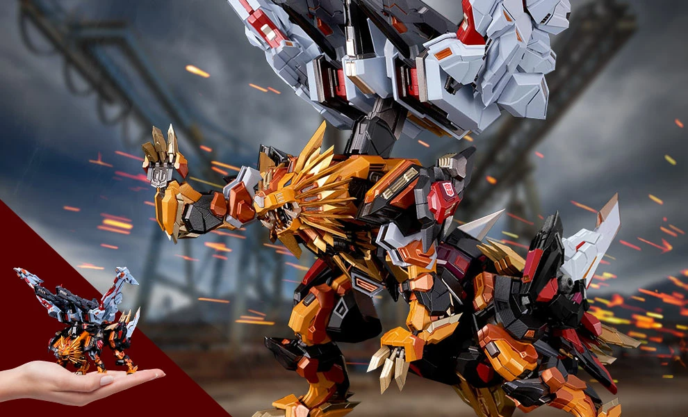 After falling victim to Deathsaurus’s Living-Metal-Destroying Cannon, Ginrai was left in an immobile state. Desiring to be of use, he insisted on undergoing an experiential procedure that would enable Ginrai to become a power-up to Star Saber. He underwent the process and became “Victory Leo” finally!Β After combined with Star Saber, Victory Saber will be the final combined form! It is a fully articulated figure with over 120 articulated positions!Β Super-poseable with diecast parts for solidity and heaviness!Β LED lighting effect on eyes and mouth!